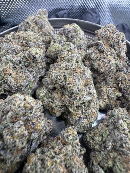 Grim Reaper is the sweet and sedating union of two Indica’s. By breeding Larry OG with Granddaddy Purple, the astonishing trichome-laden. Grim Reaper was born, smelling of grape candy, blueberry muffins, and tart Kool-Aid. The potency of this strain gives the consumer a one-two punch to the head and body, initially landing between the eyes and settling down into the limbs. Grim Reaper is a delicious dessert strain that is best suited for after dinner. Its effects may help with managing nausea, stress, minor body aches, and sleeplessness.